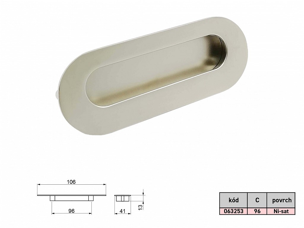 MILENA 96 úchytka zadlabací Ni-SATIN