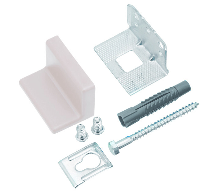 STRONG závěsné kování na bok korpusu hmoždinka + šroub eurošroub bílá