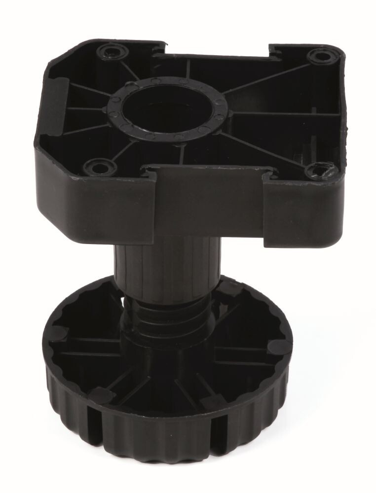 Rektifikační noha plastová Výška 100 mm Rektifikace : -10/+25 mm Příchyt soklu 146997 (k našroubování) nebo 146996 (do drážky pro plastový sokl) Nosnost 200 kg