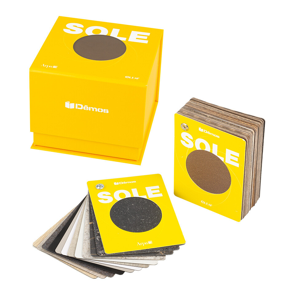 SOLE kolekce krabička obsahuje 2 vzorníky - vějíře. 1 ks Cleaf - 35 dekorů 1 ks Arpa (pracovní desky) - 12 dekorů